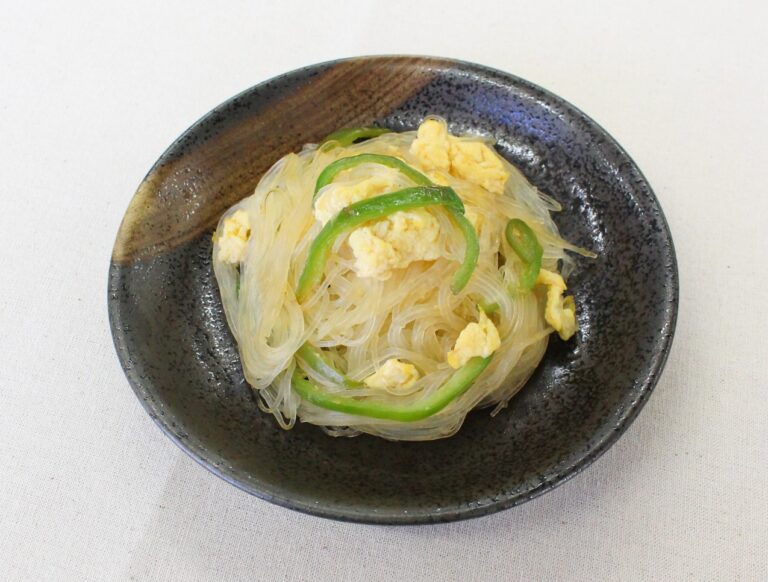 ごま油が香る卵と春雨の中華炒めは、ふんわり卵とシャキシャキ野菜、つるっとした春雨の食感が楽しい一品です。