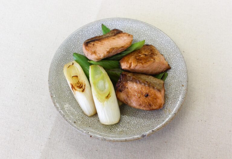 鮭と長ねぎをバターで香ばしく炒め、醤油とブラックペッパーで味付けした和食の主菜です。バターのコクと香りが鮭の旨味を引き立て、さらに長ねぎの甘みとも相性抜群な、手軽で満足感のある一品です。