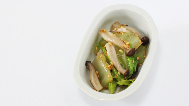 白菜としめじをごま風味のタレで和えました。