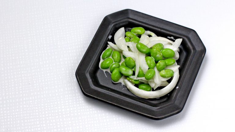 枝豆と玉ねぎスライスをマヨネーズで和えたさっぱりとした一品です。マヨネーズのコクとこしょうの辛みをアクセントに仕上げました。簡単なので作り置きしておくと便利ですね。