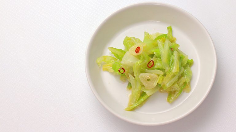 春キャベツをたっぷりと使い、にんにくの風味をきかせました。にんにくにしっかりと火を通し、香りを出すとより一層美味しくなりますよ!キャベツは調理前に茹でてカリウムを控えましょう!